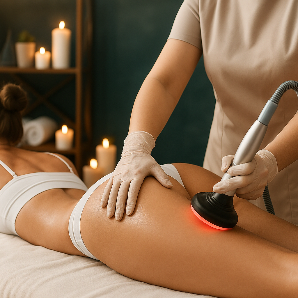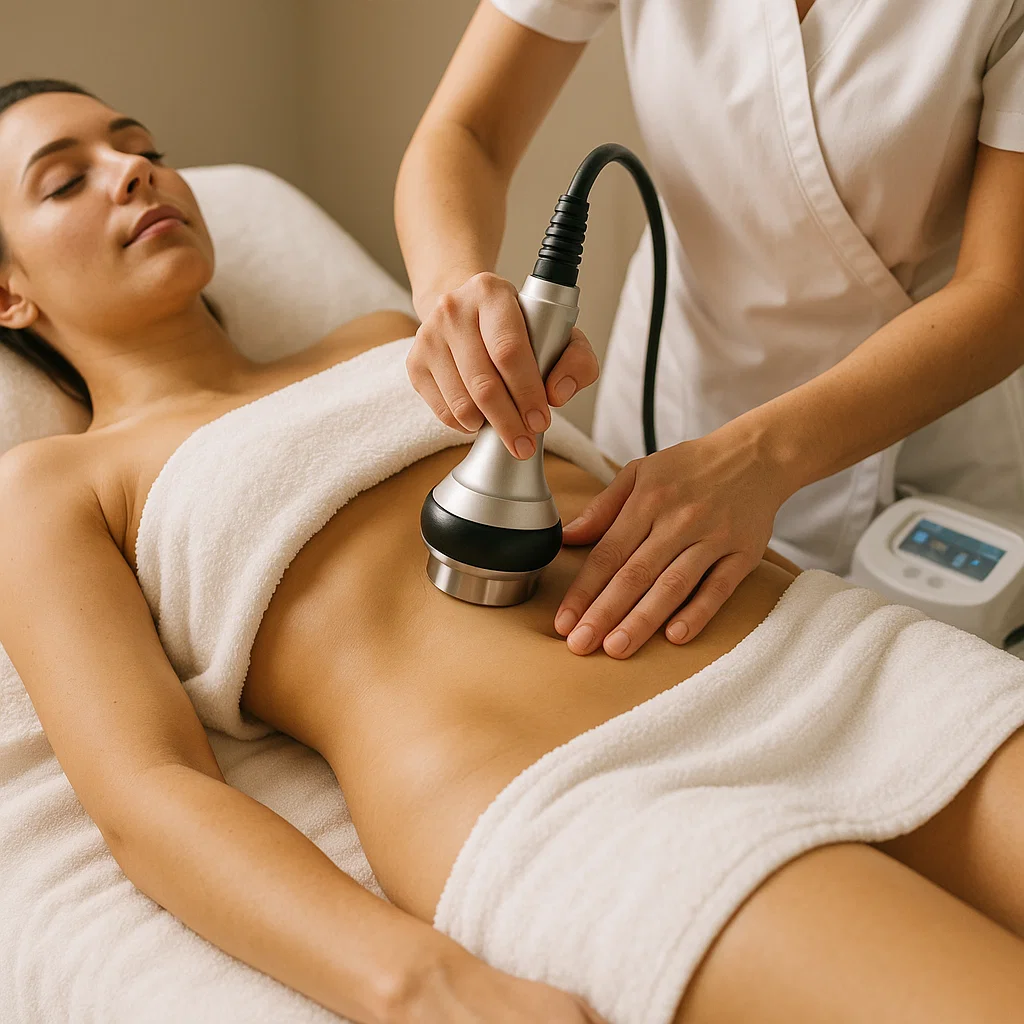 Ondas ultrasónicas que actúan sobre grasa localizada, ayudando a reducir volumen en zonas difíciles. Es un tratamiento cómodo, no invasivo y con resultados progresivos. Tu cuerpo se siente más ligero y moldeado.
