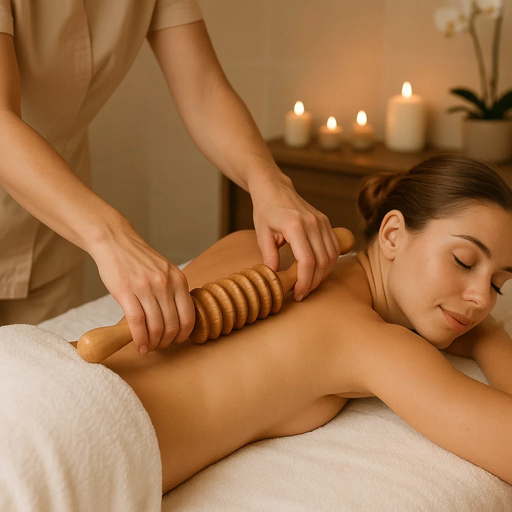 Utiliza herramientas de madera para estimular la circulación, reducir celulitis y moldear el cuerpo naturalmente. Cada movimiento activa tu sistema linfático y reafirma la piel.